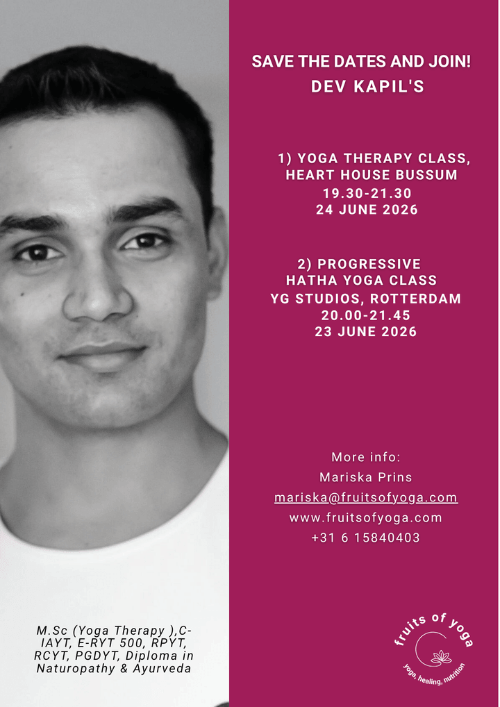 Yoga master Dev Kapil uit India (www.onewellness.com.sg), komt weer naar Nederland voor een aantal yoga workshops! Wat: Vinyasa Flow yoga workshop (focus: adem, bandha’s en een aantal basis vinyasa yoga […]